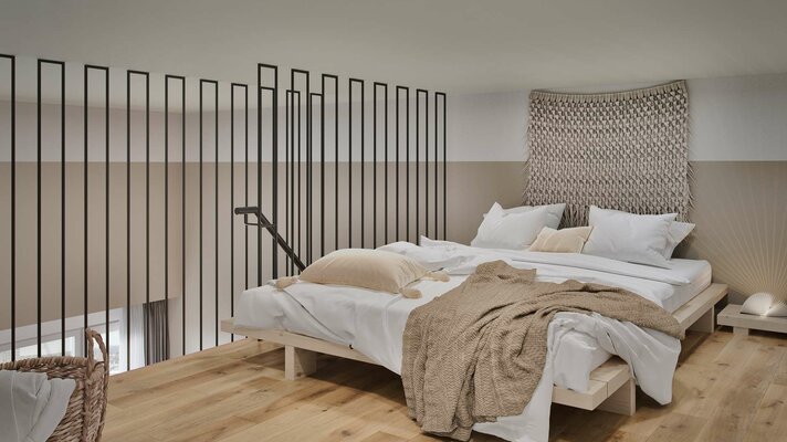 • Kreatives Mezzanine-Konzept mit Schlafnische